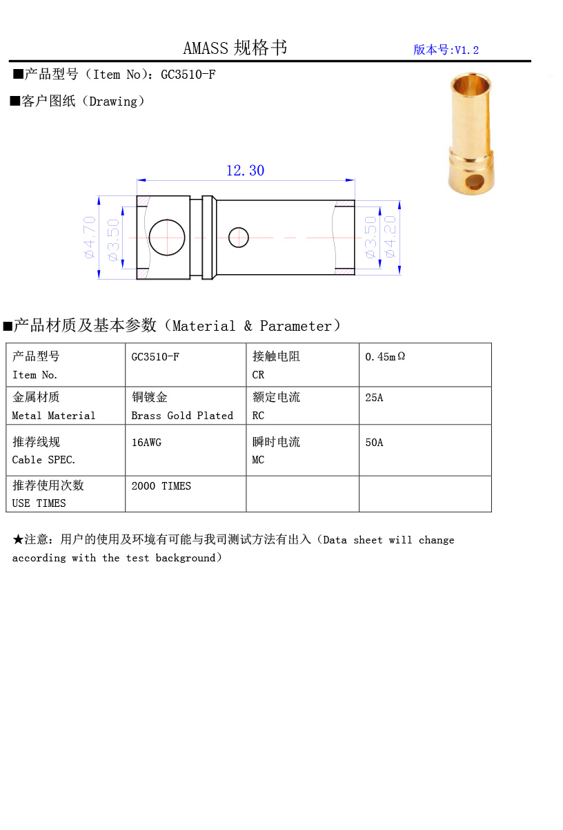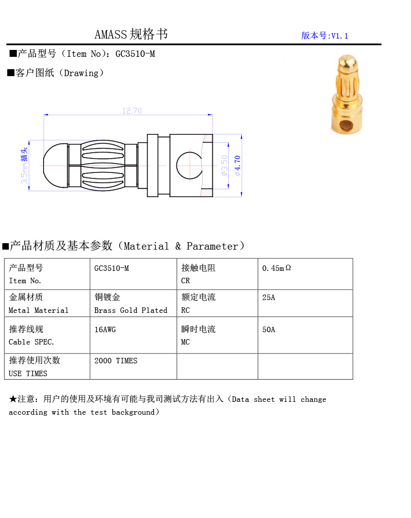 接觸件材質(zhì):銅鍍金