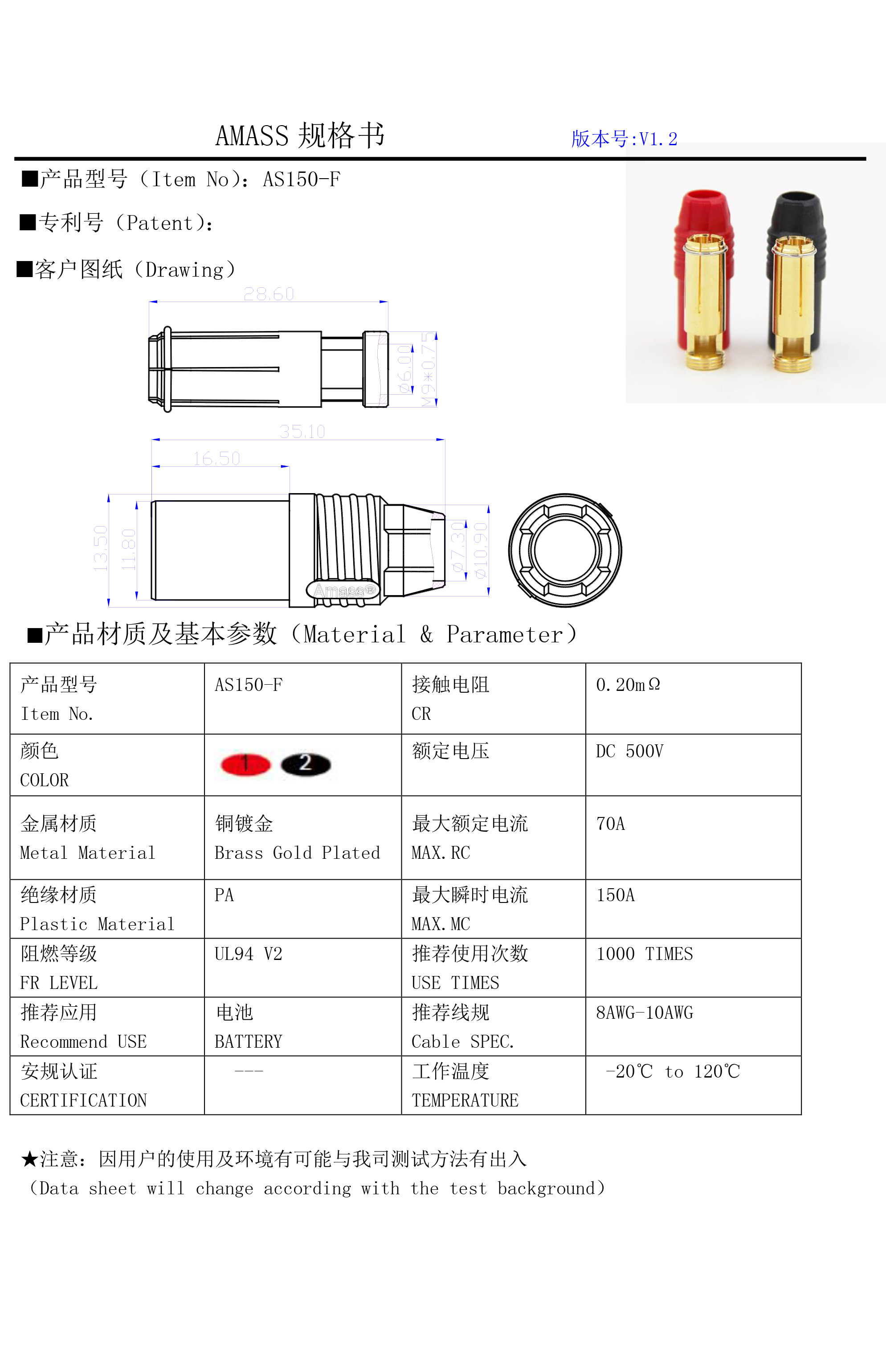 接觸件材質(zhì):銅鍍金