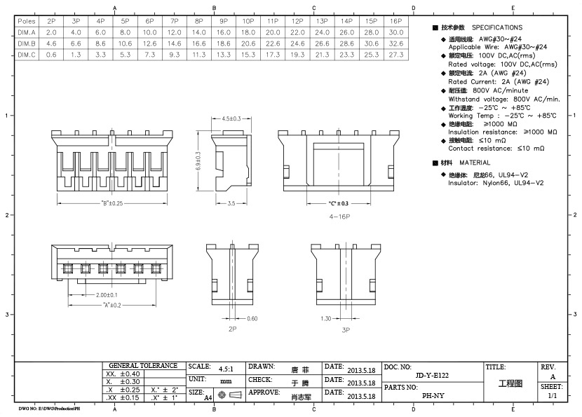 絕緣體材質(zhì):尼龍PA66 UL94V-0(2)